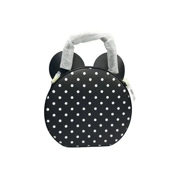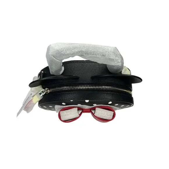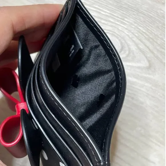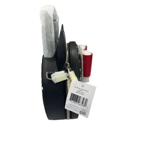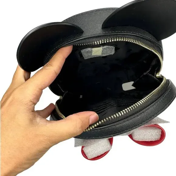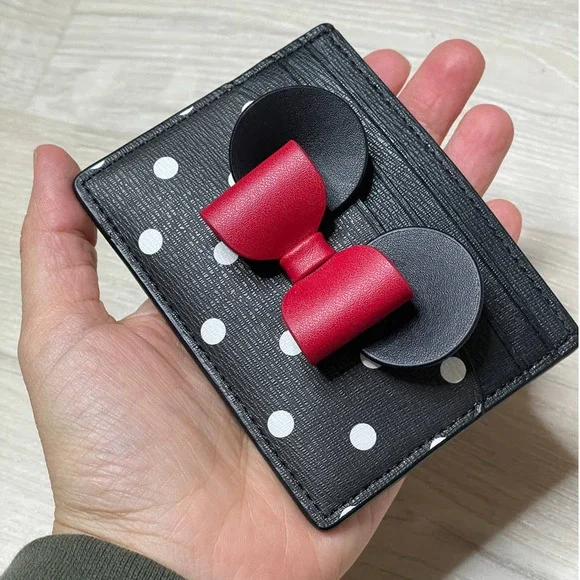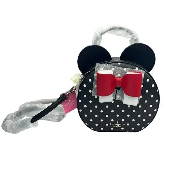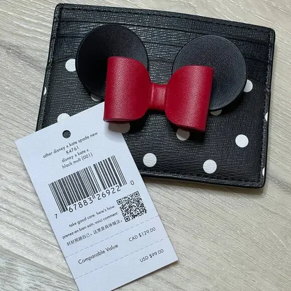 Kate Spade Disney Minnie Mouse Crossbody bag and card holder Crossbody bag :7.4'' h x 7.84'' w x 2.6'' d without ears and bowhandle drop: 2.95''strap drop: 22''refined grain leathertrim: smooth leathermetal pinmount logotwo way spade jacquard lininginterior front credit card slots & back slip pocketn/azip around closuredust bag not includedCard holder:- 3'' h x 4'' w x 0.12'' d- Material: printed pvc- metal pinmount with spade logo- two way spade jacquard lining- exterior: 6 credit card slots, open middle compartment- dust bag not includedPlease see pictures for more details.Thank you